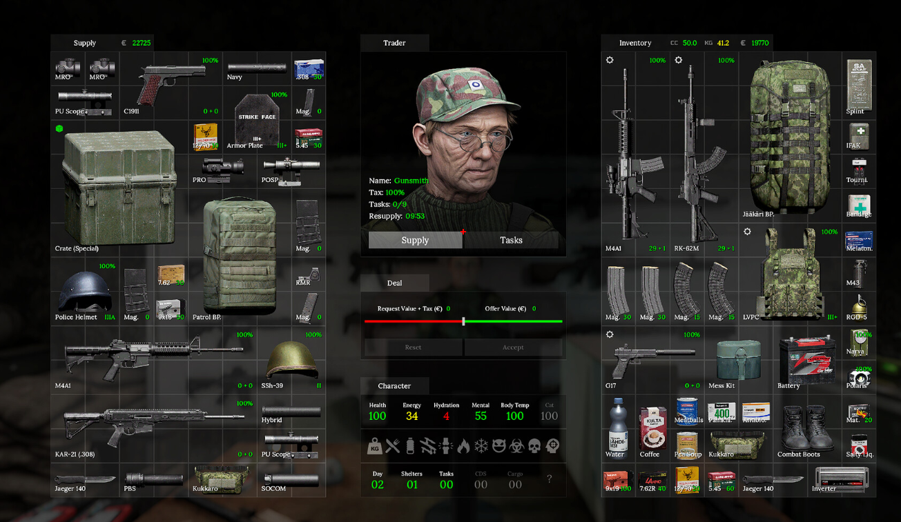 The Early Access build includes multiple map zones, dynamic world events, a full day-night cycle that runs on a 2 hour 40 minute real-time loop, a detailed health system with fractures, bleeding, dehydration, and temperature management, manual magazine loading, weapon customization, and an Ironman mode for the truly unhinged among us.
